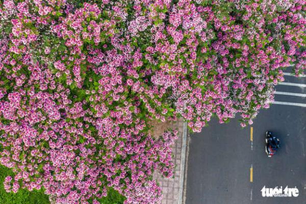 Phượng hồng nhìn từ trên cao - Ảnh: NGUYỄN HIỆPPhượng hồng có thân to như phượng đỏ đã phổ biến ở Việt Nam. Có nhiều ý kiến cho rằng đây là cây ngoại lai, tuy nhiên các cơ quan nông nghiệp tại Lâm Đồng chưa có ghi nhận nào về việc xuất hiện phượng hồng tại phía nam Lâm Đồng.
