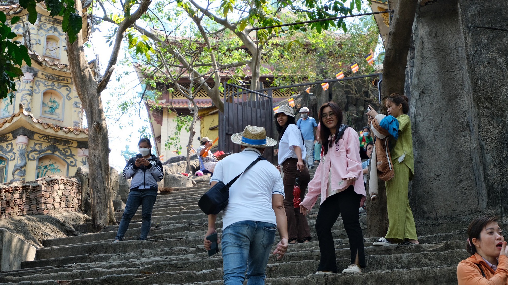 Để lên chùa, du khách và các Phật tử phải leo 220 bậc thang được đắp bằng xi măng