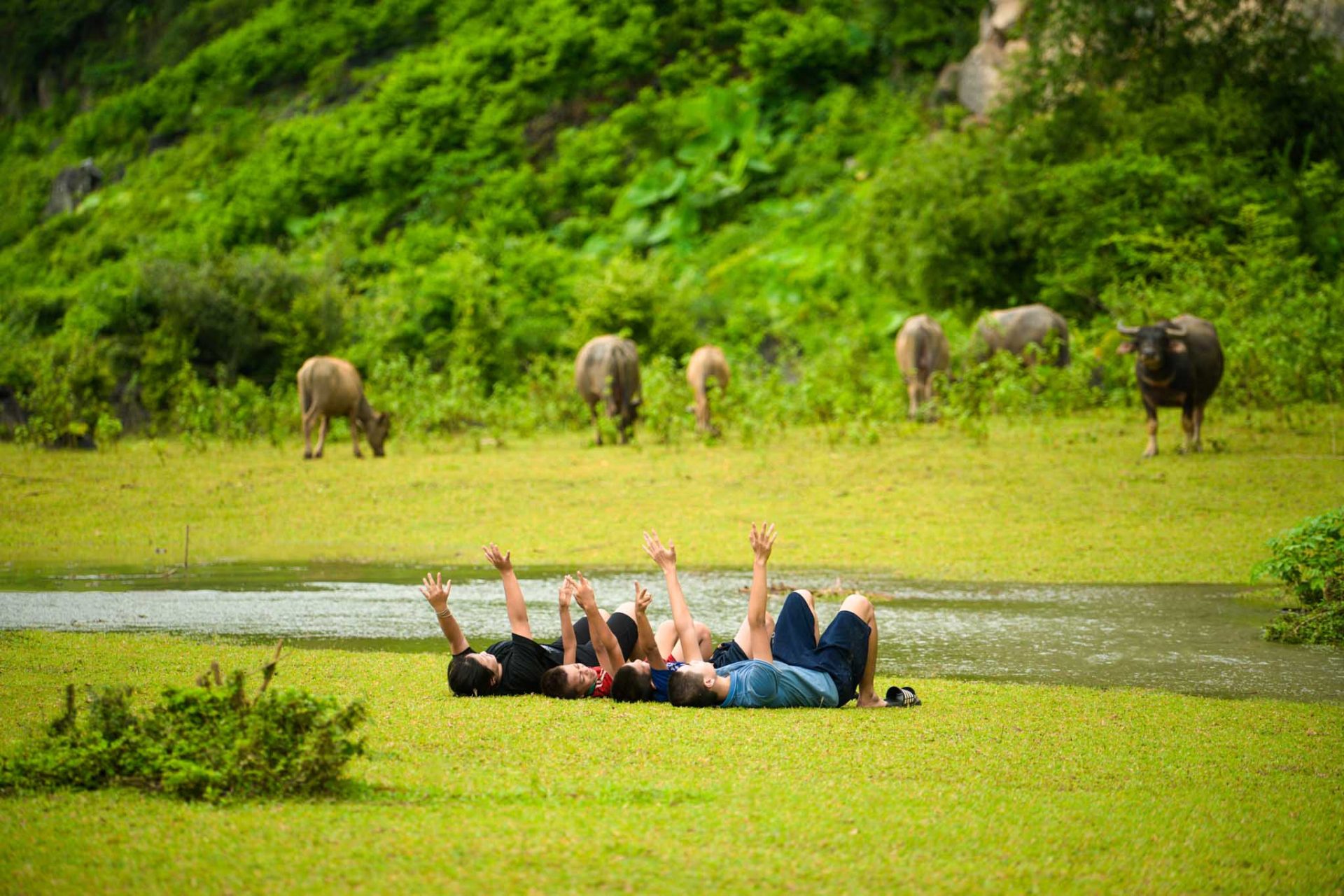 Bức tranh thiên nhiên yên bình. Ảnh: Hùng Vĩ Anh Hùng Vĩ, nhiếp ảnh gia tự do kiêm hướng dẫn viên địa phương, chia sẻ khi đến Yên Thịnh vào tháng 7, du khách sẽ có dịp tắm suối; chèo thuyền và cắm trại trên những bãi cỏ xanh, những mô đất bằng phẳng. Ngoài ra, du khách sẽ được hòa mình vào cuộc sống người dân bản địa, cùng thả diều, đá bón… với trẻ em nơi đây.
