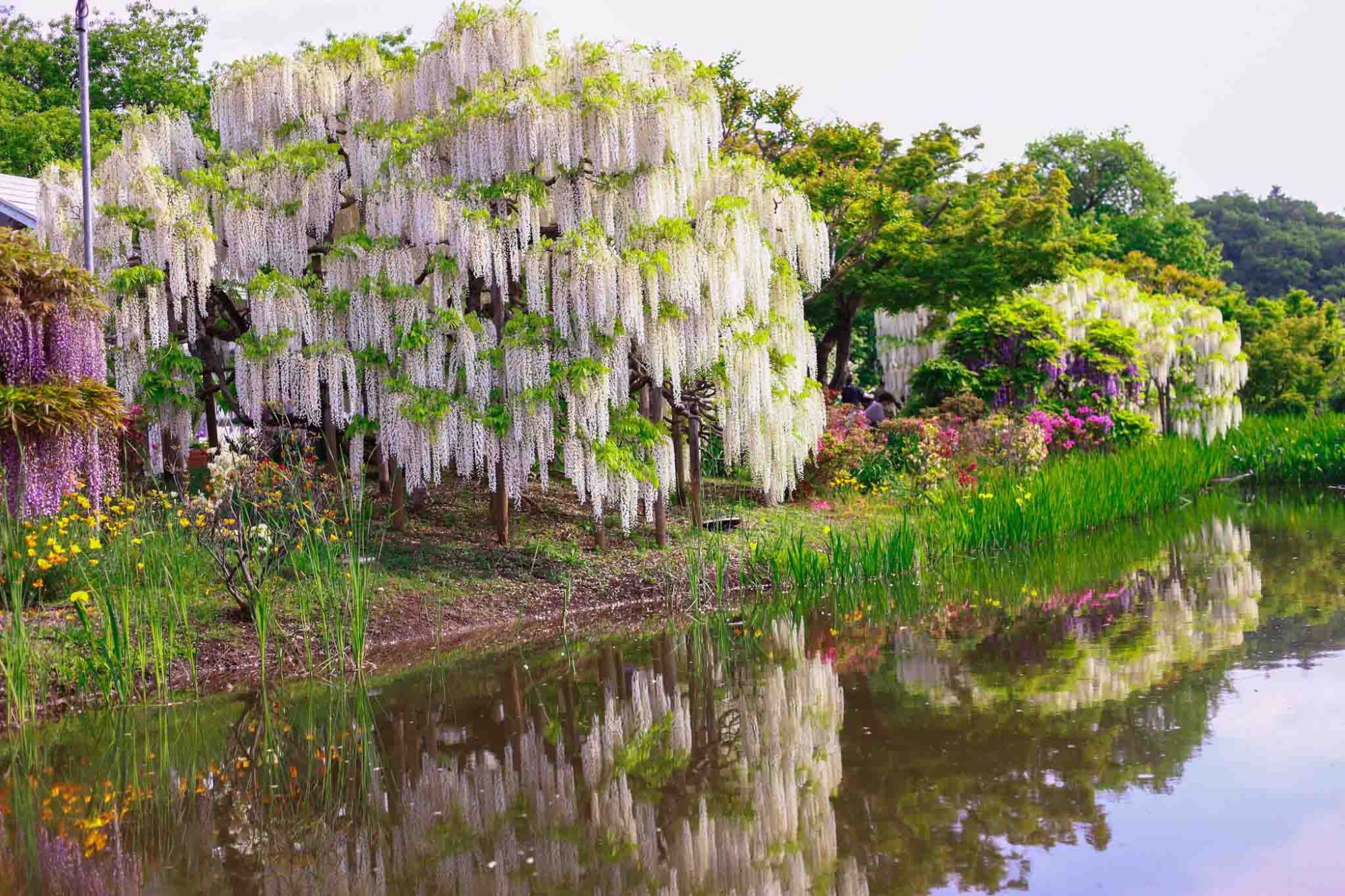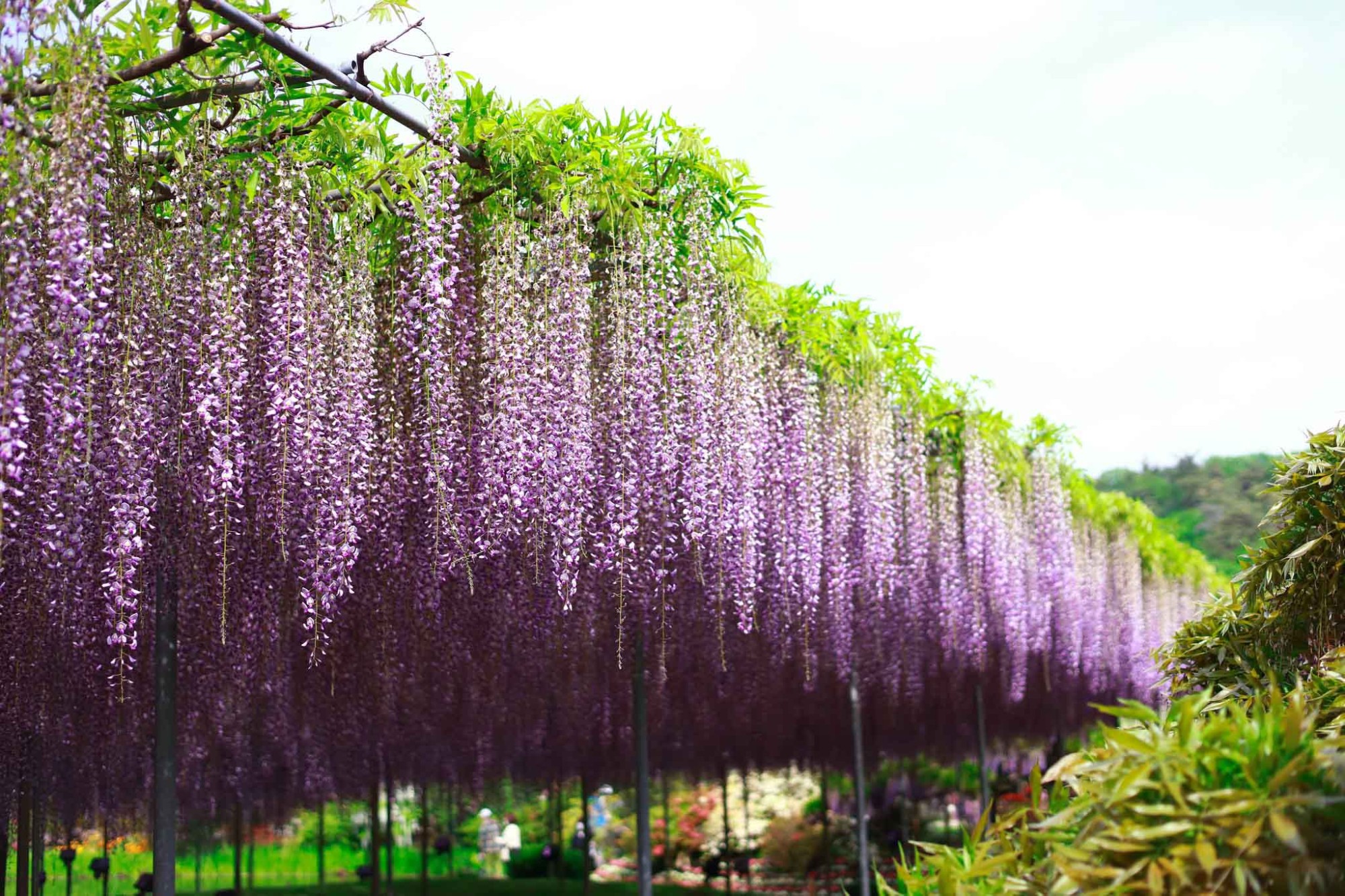 Ở công viên Ashikaga, hoa tử đằng có rất nhiều màu hoa khác nhau như xanh, vàng, hồng… nhưng nhiều nhất là tím