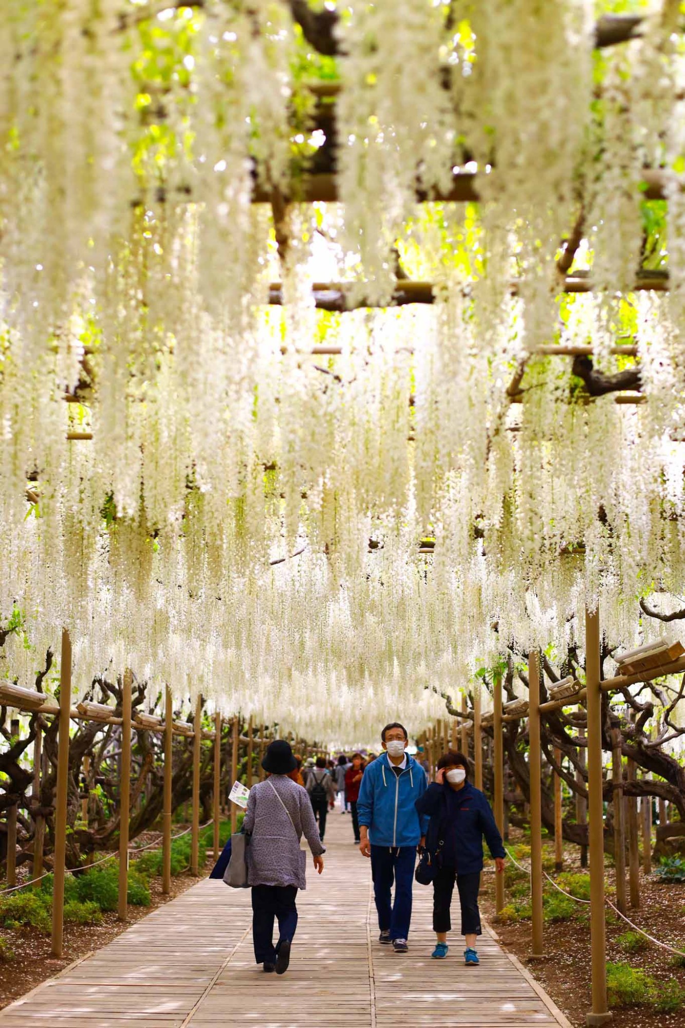 Một điểm nhấn thú vị của công viên Ashikaga đó là đường hầm hoa tử đằng dài gần 100m, với “mái vòm hoa” hút mắt người xem