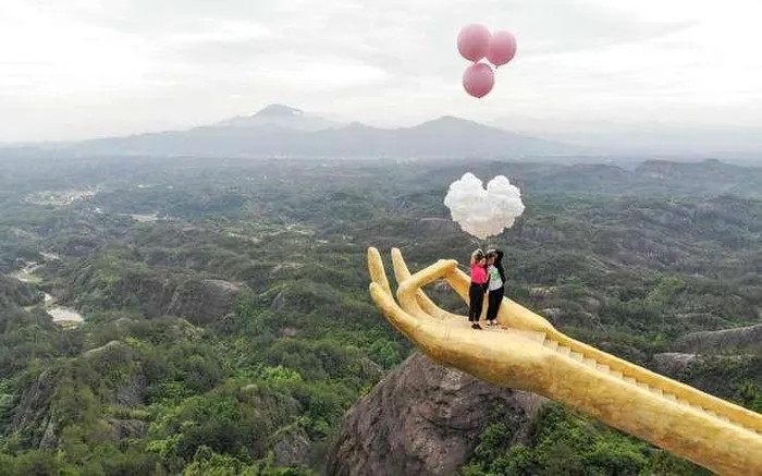 Bàn tay khổng lồ phiên bản Indonesia nằm ở giữa rừng Pinus Pengger Bantul. Mặc dù có vẻ ngoài thô cứng hơn so với những phiên bản khác nhưng bàn tay này lại thu hút rất đông khách du lịch nhờ khung cảnh xanh mát của núi rừng.