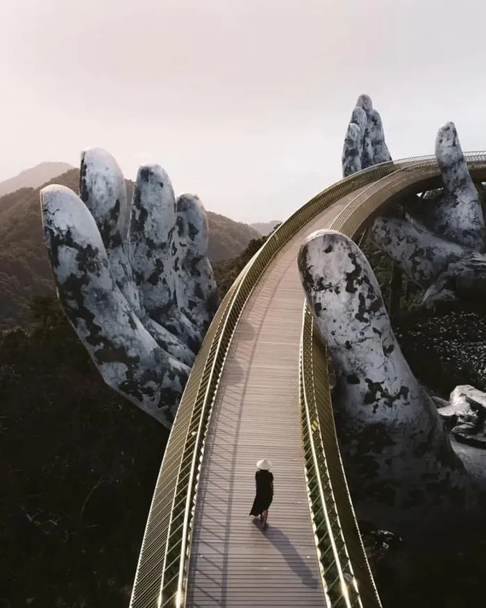 Không chỉ là cây cầu thu hút khách du lịch nhất Đà Nẵng lẫn được xếp vào top 10 những cây cầu có kiến trúc độc đáo nhất thế giới, và nhờ vào độ cao hơn 1400m so với mặt nước biển của mình, cầu Vàng như được bắt ngang bầu trời, giúp bạn có cảm giác như đang được bước đi dạo chơi trên mây.