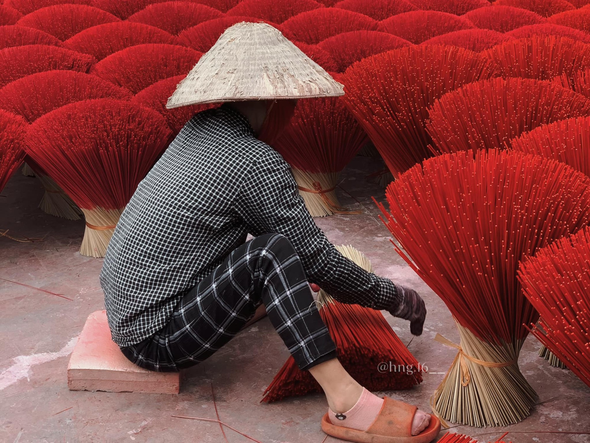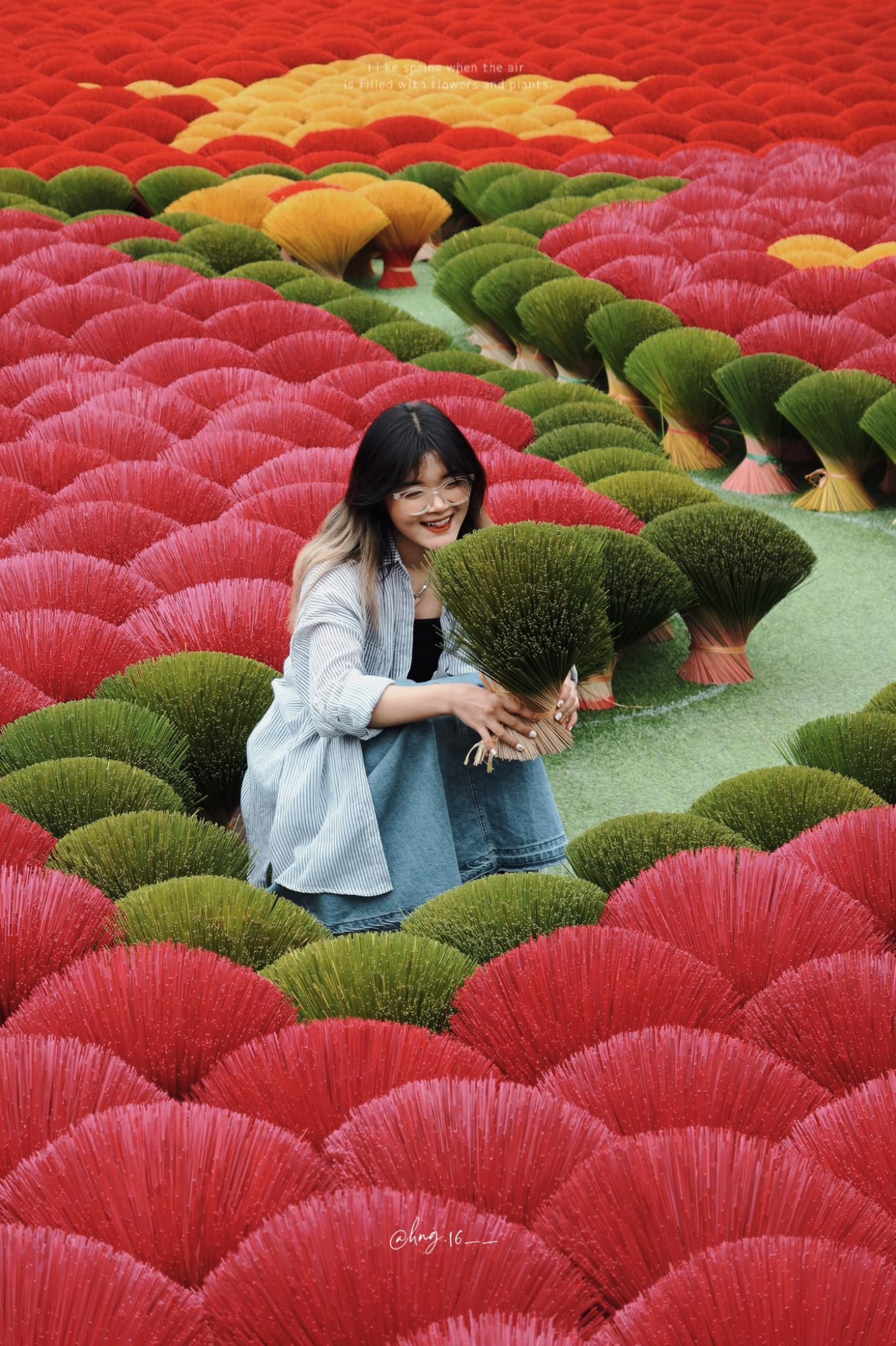 Ngôi làng có nghề truyền thống hơn 100 năm gây ấn tượng với du khách ngay từ lần đầu tiên bởi những bó hương tạo hình đẹp mắt, không gian tràn ngập màu sắc rực rỡ như xanh, đỏ, vàng,…