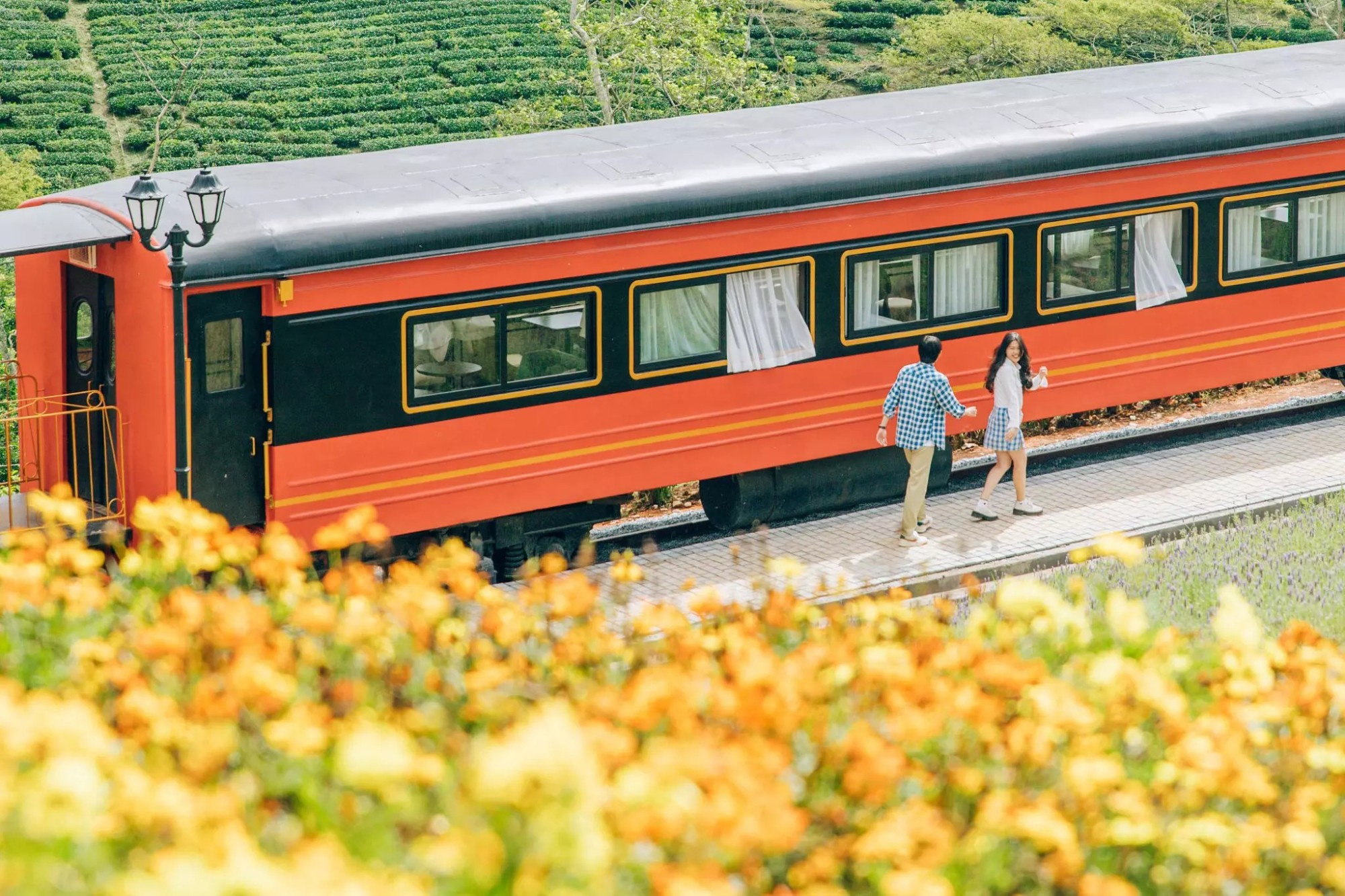 Từ toa tàu, du khách có thể ngắm cánh đồng hoa hoặc đồi chè.