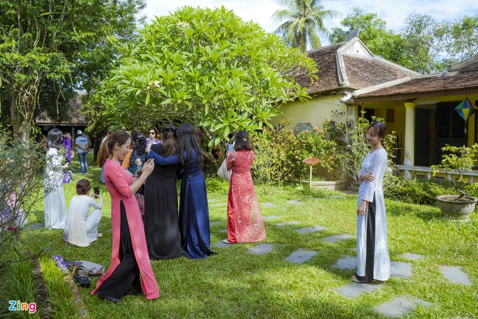 Thành viên của đoàn xe cùng nhau lưu lại những hình ảnh kỷ niêm tại một nhà vườn cổ trên lộ trình diễu hành.