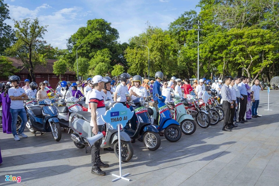 Những người tham gia đoàn diễu hành tập trung tại Bia Quốc Học, nơi có ngôi trường nổi tiếng với giá trị lịch sử, văn hóa để làm lễ xuất phát.