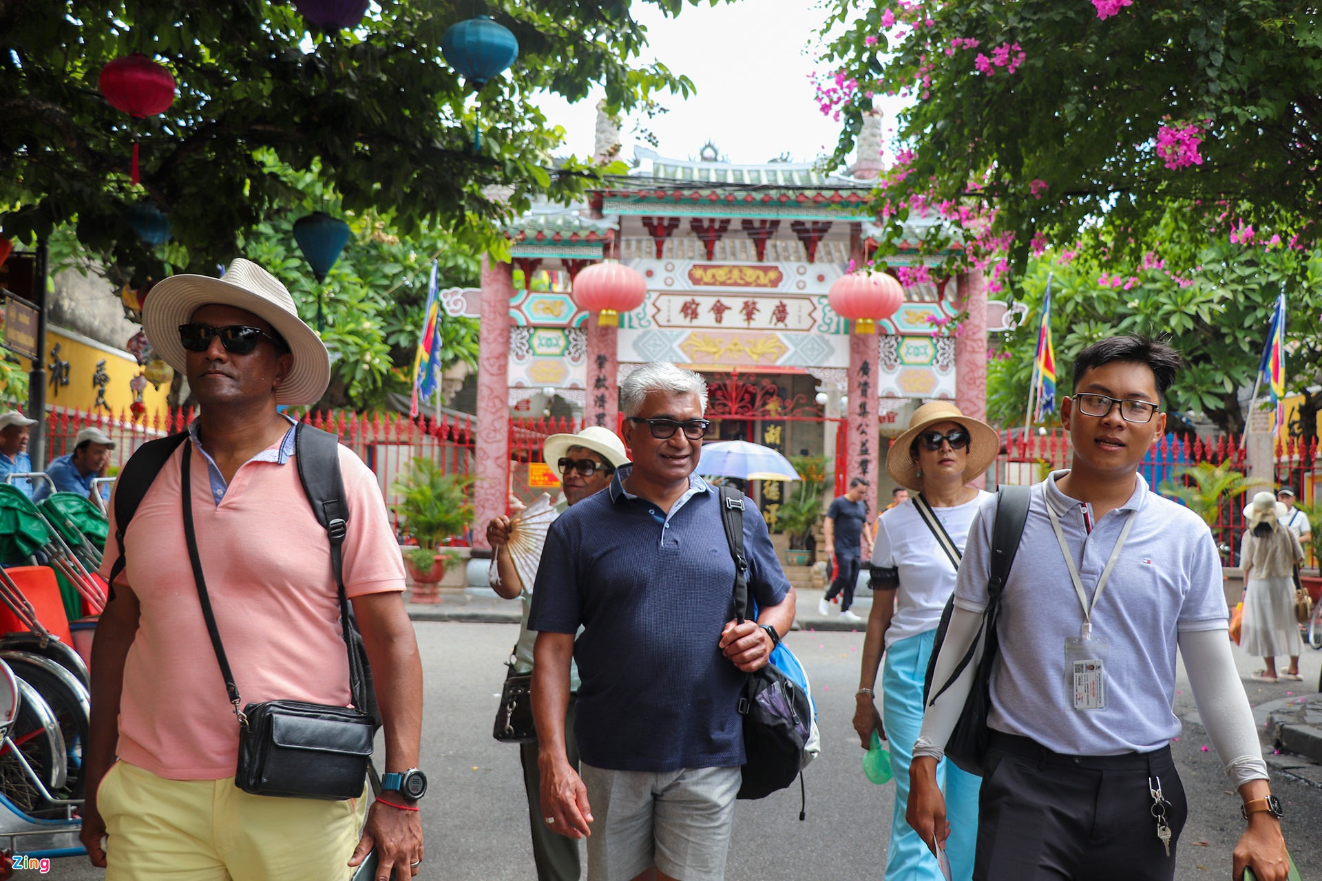 "Khi du lịch Việt Nam mở cửa với du khách quốc tế từ tháng 4 đến giờ, tôi thấy lượng khách đến các điểm tham quan tạm ổn. Tuy nhiên, muốn Hội An được lượng khách như trước khi có dịch Covid-19 có lẽ phải sang năm 2023. Từ nay đến tháng 10 vẫn là mùa thấp điểm của khách Tây đến Việt Nam nên tôi vẫn kỳ vọng vào những tháng sắp tới", ông Đoàn Công Vũ Linh (áo đen), hướng dẫn viên, chia sẻ.