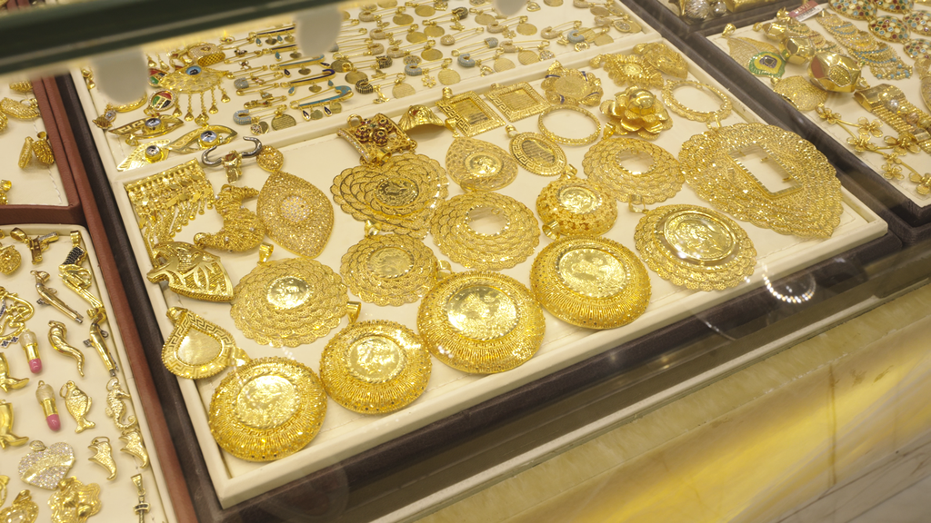 Khu chợ có cả trăm cửa hàng vàng đồ sộ, phủ một màu vàng lấp lánh từ những trang sức đắt tiền, xa xỉ.