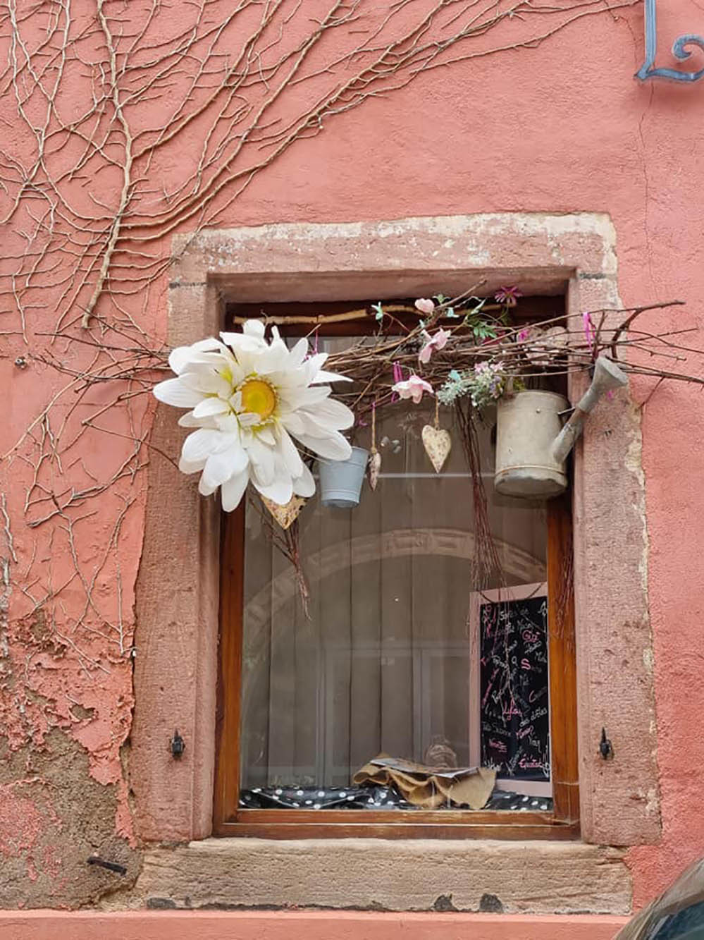 Ngôi làng mang sắc màu sặc sỡ với những lối mòn, con đường lát đá, cửa hàng nhỏ xinh bán đồ lưu niệm, hay nhà hàng với những giàn hoa và những ngôi nhà với những cửa sổ được trang trí đẹp mắt.