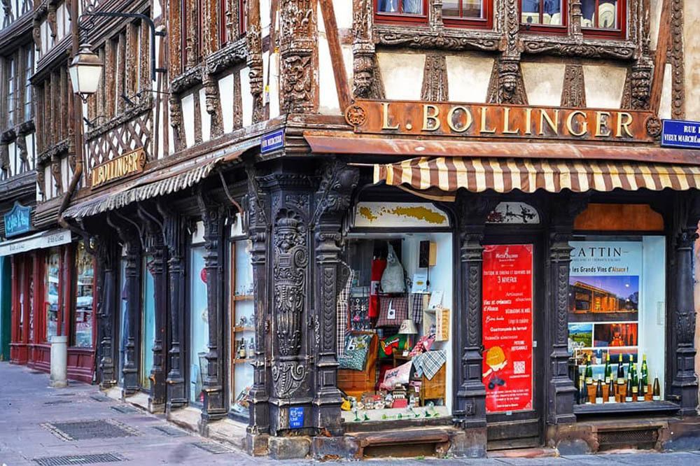 Strasbourg với lịch sử lâu đời, từng là nơi tranh chấp của Pháp và Đức. Do đó, nơi này ít nhiều ảnh hưởng lối kiến trúc Fachwerkhäuser ở nhiều nơi của Đức. Những ngôi nhà với những thanh gỗ chéo tạo ra những ổ cửa rất đẹp mắt.