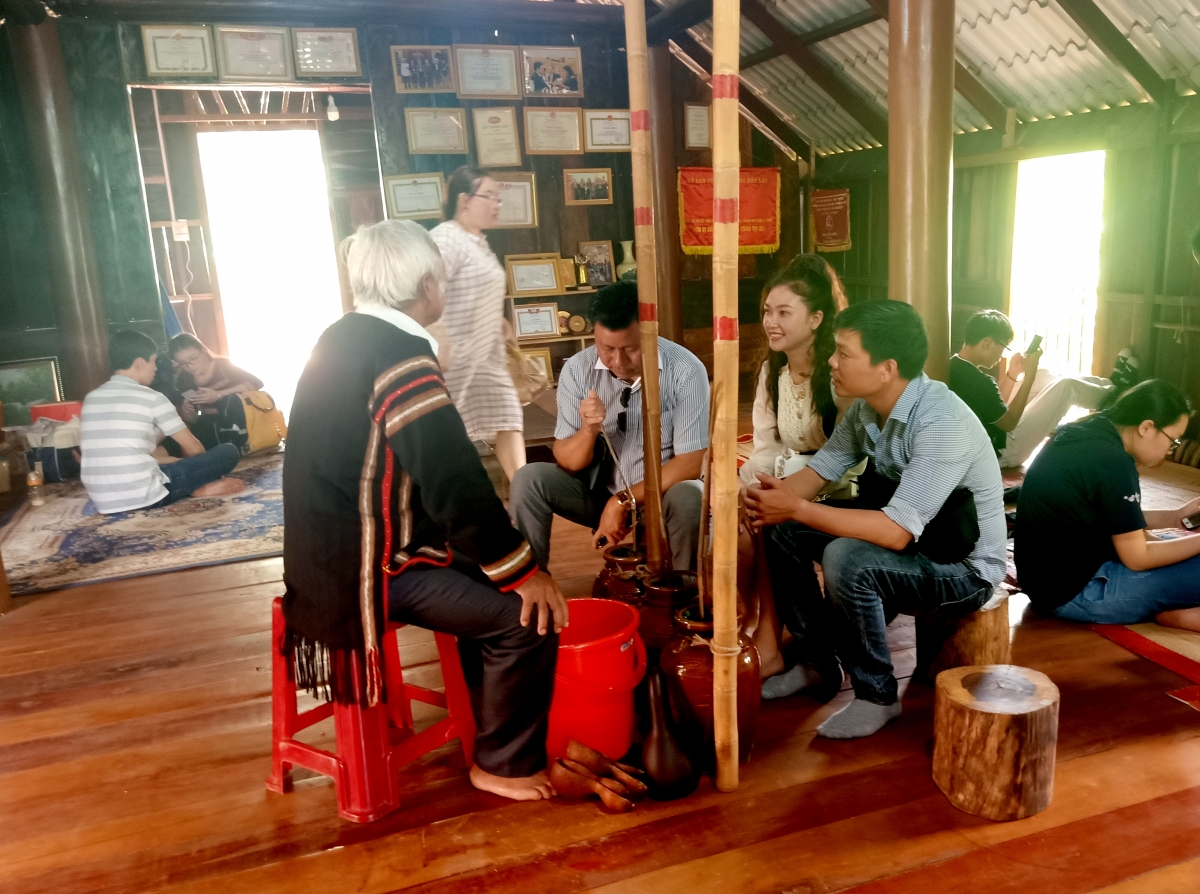 "Có nhiều đoàn khách từ các tỉnh như ở Hà Nội, TP.HCM, Huế và các tỉnh lân cận, họ về đây thưởng thức các món ăn của đồng bào, thưởng thức cồng chiêng, trải nghiệm tìm hiểu nền văn hóa của dân tộc bản địa. Hiện nay 9 hộ gia đình chúng tôi cũng phân công ra mỗi người mỗi công việc, ví dụ nhà trồng rau, nhà nuôi heo, nhà nuôi gà, nhà nấu rượu cần. Tôi rất mong sau này, khi khu du lịch phát triển hơn nữa thì sẽ có nhiều bà con tham gia hơn" - bà H Yam Buôn Krông nói.