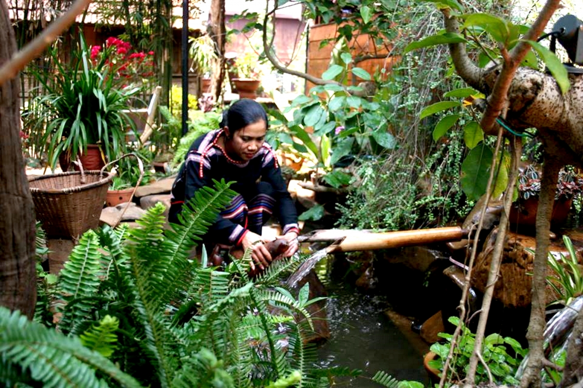Bên trong khuôn viên nhà dân, cảnh quan được cải tạo độc đáo (Nguồn: Arul House) Theo chị H Tít Aliô, người dân buôn Ako Dhông, hiện nay từng cá thể riêng biệt trong buôn đã cùng liên kết lại tạo thành một khối đoàn kết đậm màu sắc văn hóa: "Tham gia vào du lịch cộng đồng, từng hộ gia đình sẽ có một đặc điểm khác nhau nhưng họ vẫn có một điểm chung, đó là sự đoàn kết, gìn giữ văn hóa và muốn nét văn hóa đó phát triển cho cộng đồng, cho chính bản thân mình trước, sau đó là cho các dân tộc anh em khác được thưởng thức và cảm nhận được văn hóa phát triển ngày càng tốt hơn".