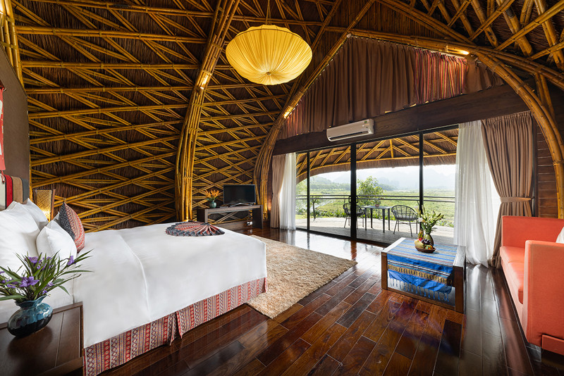 Lấy cảm hứng từ núi rừng thiên nhiên và văn hóa Tây Bắc, khu nghỉ dưỡng được đặc biệt chú trọng làm mới thiết kế với vật liệu xây dựng từ gỗ và tre nứa cho 155 phòng nghỉ, nhà hàng và khu bể bơi, mang tới vẻ đẹp mộc mạc của núi rừng, bản làng, khiến du khách được đắm chìm trong sự thư thái và yên bình đúng nghĩa.