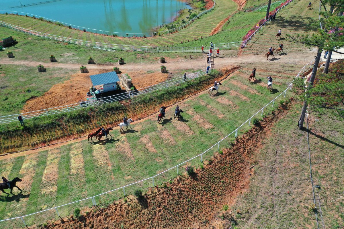 Nài ngựa phải điều khiển ngựa trên một cung đường đua được thiết kế uốn lượn men theo hồ Đạ Khai, chạy thoai thoải lên sườn đồi dài khoảng hơn 1 km.