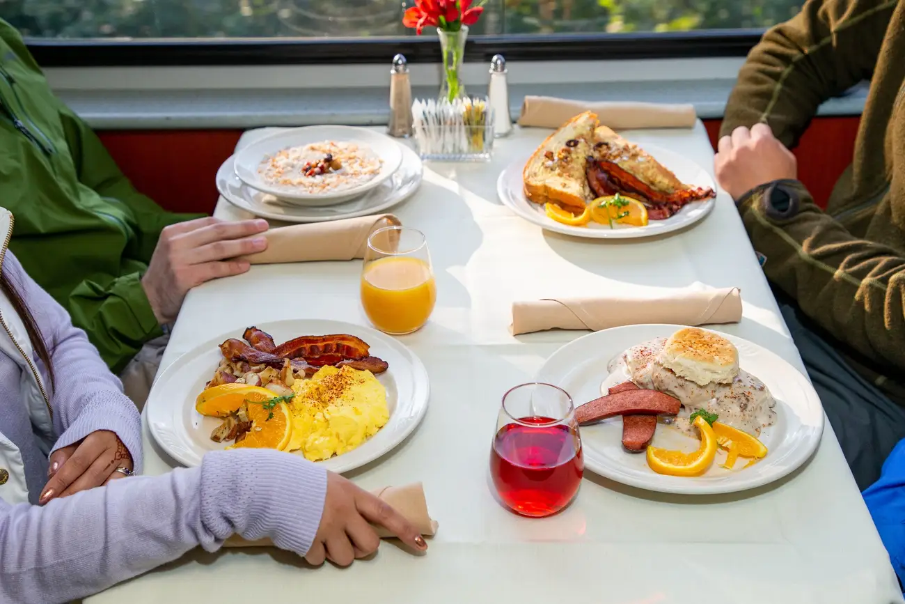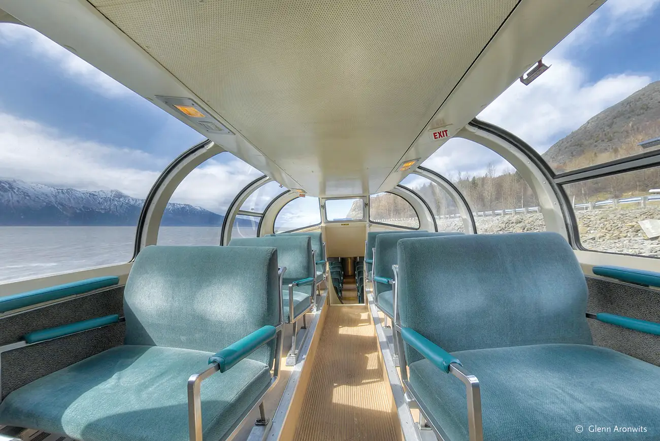Ảnh: Alaska RailroadNếu muốn trải nghiệm dịch vụ sang trọng hơn, hành khách có thể nâng cấp lên dịch vụ Goldstar. Hạng vé này bao gồm ghế ngồi ở tầng trên dưới trần mái vòm bằng kính và các bữa ăn trong toa. Vào tháng 5-9, vé này có mức giá 489 USD đi từ Anchorage đến Fairbanks, bao gồm 3 bữa ăn.