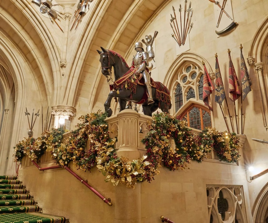 Tinh tế nhưng không kém phần ấn tượng là trải nghiệm tại điểm đến đầu tiên của du khách trong hành trình tham quan lâu đài. Cây thông duy nhất được đặt trong Nội sảnh của Windsor khiến không gian trở nên ấm cúng hơn rất nhiều. Đây là không gian do Vua George IV thiết kế từ những năm 1820, được dùng để tiếp các vị khách đặc biệt của hoàng gia. Ảnh: Royal Collection Trust.