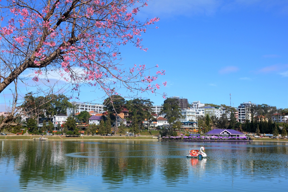 Nằm giữa trung tâm thành phố, Hồ Xuân Hương là tọa độ không còn quá xa lạ đối với du khách. Chẳng cần đi đâu xa để ngắm hoa mai anh đào Đà Lạt, chỉ cần dạo một vòng Hồ Xuân Hương là bạn đã có dịp chiêm ngưỡng loài hoa tuyệt đẹp này.