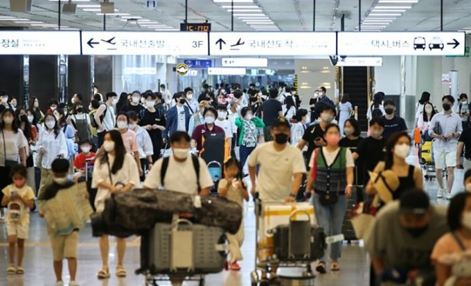 Hệ thống ETA còn có tên gọi khác là K-ETA, trong đó K là từ viết tắt của Korea - Hàn Quốc. Trên ảnh là đám đông du khách quốc tế vừa hạ cánh xuống sân bay Jeju hồi cuối tháng 7. Ảnh: Korea times ETA là hệ thống khai báo trực tuyến của Sở Di trú Hàn Quốc, cho phép người nước ngoài nhập cảnh khai báo thông tin cá nhân qua mạng. ETA được triển khai trên toàn quốc từ tháng 9/2021. Nhưng Jeju, điểm du lịch hàng đầu của đất nước, lại được miễn nhằm thu hút du khách.