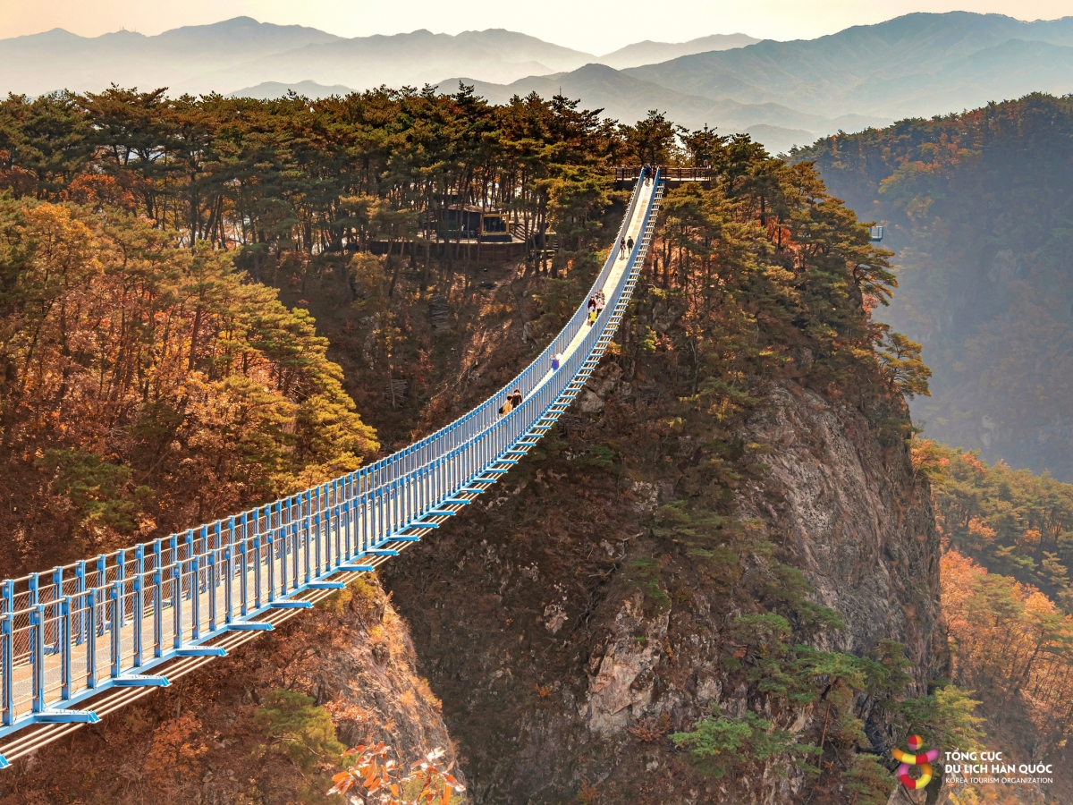 Cầu treo thung lũng Sogeumsan (Gangwon). Nguồn: KTOTrong quãng thời gian tạm ngưng đón khách vì dịch bệnh, Hàn Quốc cũng đã tạo thêm nhiều điểm du lịch mới, tạo nên nhiều mới mẻ cho du khách quay trở lại. Nổi bật là các điểm du lịch ứng dụng media art hiện đại như Trung tâm triển lãm Gwanghwa Sidae, bức tường nghệ thuật Gwanghwa-byeokhwa, bảo tàng HYBE Insight (Seoul), bảo tàng ARTE Gangneung (Gangwon).