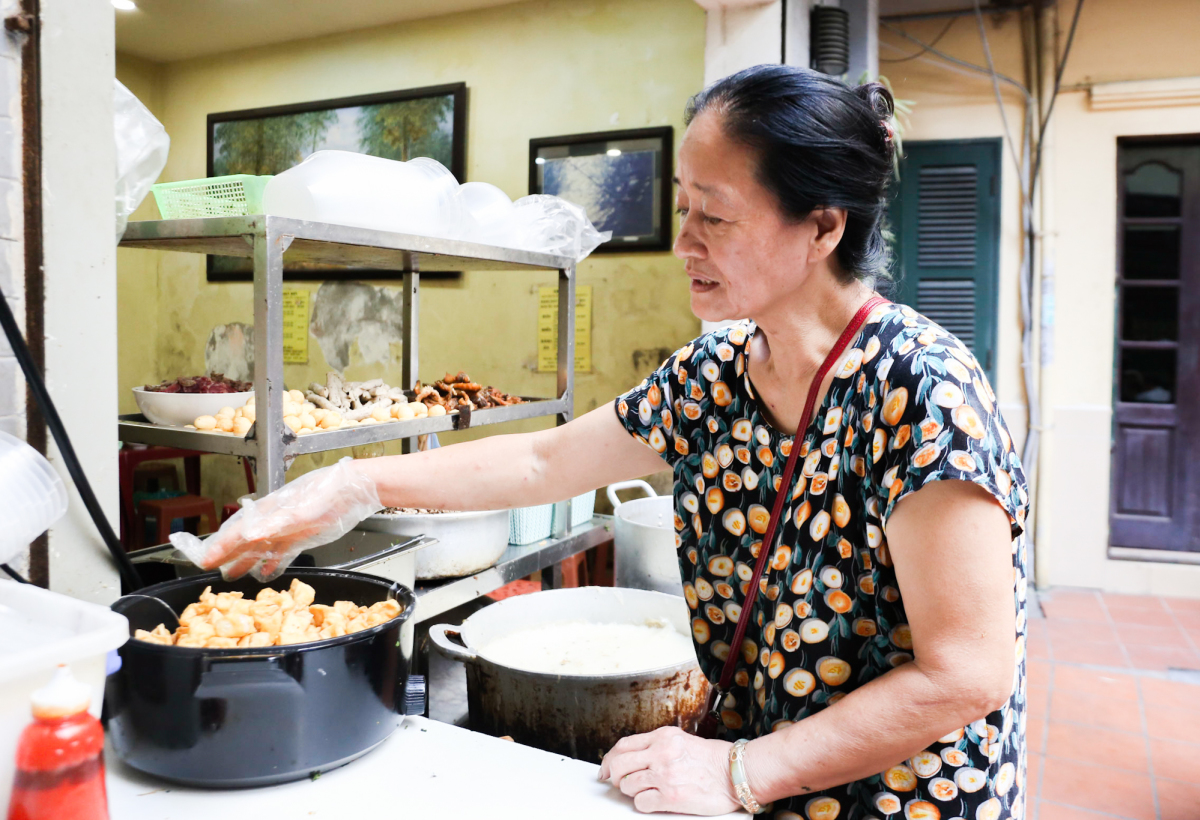 Quán nằm trong con ngõ sâu. Khách có thể ngồi ngoài trời hoặc trong nhà. Tại quán, bà Phạm Thị Nội tay lúc nào cũng thoăn thoắt múc bánh, chan nước, cẩn thận điểm từng lá hành, lá rau thơm. Bà còn luôn vui vẻ: "Tôi bán bánh đúc từ hơn 30 năm nay, ngày trước quán nằm ở mặt đường, sau này mới dọn vào trong ngõ. Mỗi ngày bán được bao nhiêu suất tôi cũng không đếm xuể nữa".
