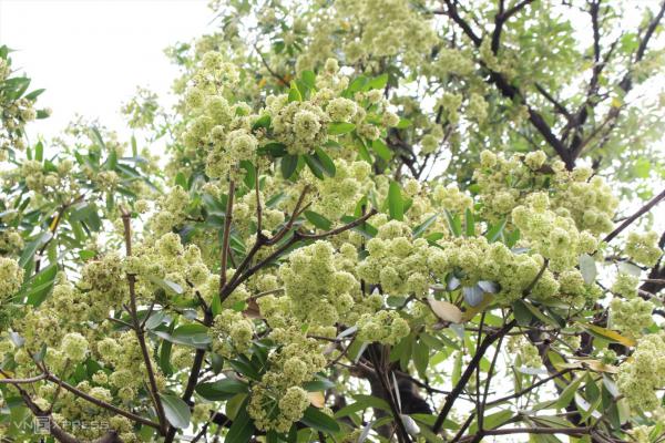 Hoa sữa ken đặc trên cành. Ảnh: Huỳnh Nhi Mỗi sáng, ông Hùng thích nhất là thấy hoa rụng thành lớp mỏng như tấm thảm trên đường rất đẹp. Ông lấy tay vốc một nắm hoa nhưng ngạc nhiên vì nó không có mùi thơm như ở trên cây.