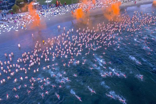 Sau khi làn khói đỏ bốc lên cùng với những tiếng trống giòn giã, mọi người đồng loạt trút bỏ khăn trên bãi cát và nhảy xuống nước để tận hưởng cảm giác mát lạnh.