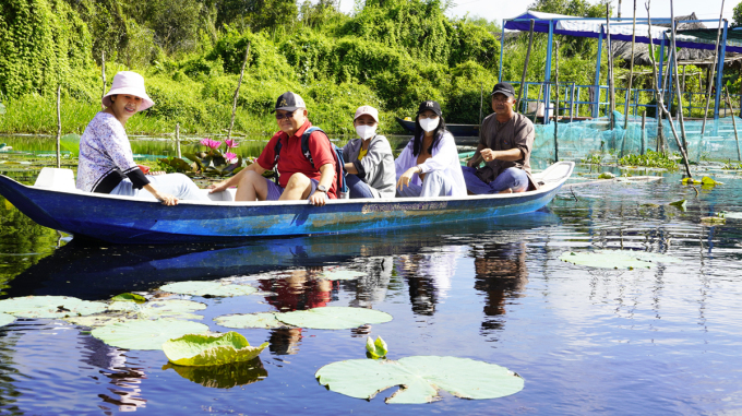 "Lần đầu tham gia hành trình nhưng tôi rất thích cảnh sông nước bình yên, đặc biệt ấn tượng với món cá lóc nướng cuốn lá sen, tép đồng xào bông điên điển, cá trê vàng chiên nước mắm gừng, đọt lục bình xào tỏi", chị Nguyễn Thị Ánh Nguyệt, 28 tuổi, du khách từ TP HCM, nói.