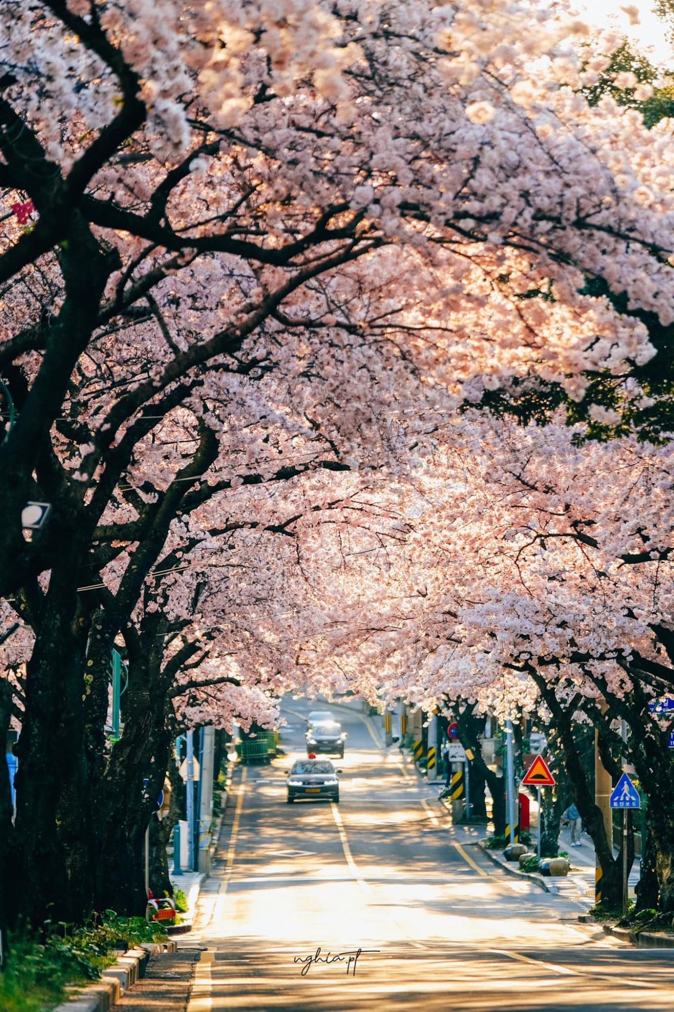 Khu phố rợp bóng hoa anh đào ở Busan, cảnh tượng như bước ra từ phim hoạt hình Anime của Nhật Bản