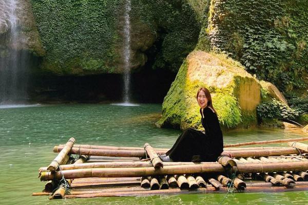 Chụp ảnh trên bè là trải nghiệm đáng nhớ nhất khi ghé thăm thác Nàng Tiên. Ảnh: Quang Kiên(Nguồn: Trung Nghĩa, VnExpress, Thứ bảy, 26/2/2022, 12:06 (GMT+7))
