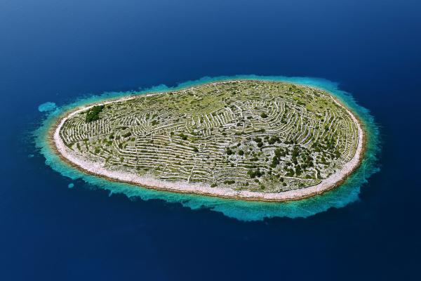 Khi nhìn từ không trung, hòn đảo Bavljenac trông như một dấu vân tay khổng lồ. Hiệu ứng đặc biệt này được tạo ra bởi mạng lưới tường thành bằng đá trên khắp đảo.
