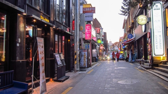 Khu phố vào ban ngày thường yên tĩnh hơn buổi đêm. Ảnh: Seoul Guide Itaewon luôn nằm trong top những nơi nhất định phải đến ở Seoul của khách quốc tế. Nó được coi như khu phố "đa quốc gia". Nhưng cũng chính vì cái tên "tây" này, mà trước đây, Itaewon chỉ là nơi dành cho người nước ngoài. Người Hàn Quốc luôn có cảm giác đây là nơi họ không thuộc về, nên thường không lui tới. Mọi việc bắt đầu thay đổi sau khi bộ phim Itaewon Class (Tầng lớp Itaewon) lấy bối cảnh là khu phố Itaewon nổi tiếng khắp châu Á vào đầu năm 2020. Kể từ đó, giới trẻ Hàn Quốc bắt đầu thoải mái với khu vực này hơn, và đổ xô tới để check-in các địa điểm trong phim. Dần dần, nơi này trở thành điểm ăn chơi, giải trí của khách cả trong và ngoài nước.