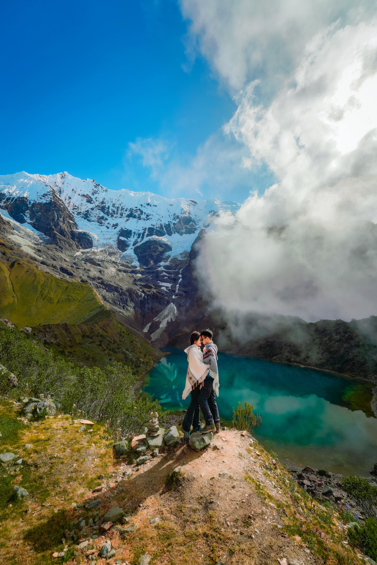 "Khi vượt qua được đỉnh núi cuối cùng và nhìn thấy mặt nước hồ xanh ngắt dưới chân núi tuyết Humantay, bên trên là những dải mây vờn quanh hồ mà bạn có thể chạm vào được, bao nhiêu mệt mỏi tan biến, tất cả mọi người đều ngồi im lặng để tận hưởng khoảnh khắc hiếm có trong cuộc sống", anh Tùng tả. Nhìn những bức ảnh chụp lại tại hồ Humantay, chắc hẳn nhiều du khách sẽ cho rằng đây là cảnh quan ở vùng núi châu Âu nào đó như Thụy Sỹ hay Na Uy. Có những lúc mây vờn xuống gần mặt hồ, khiến bạn cảm thấy như cảnh thần tiên.