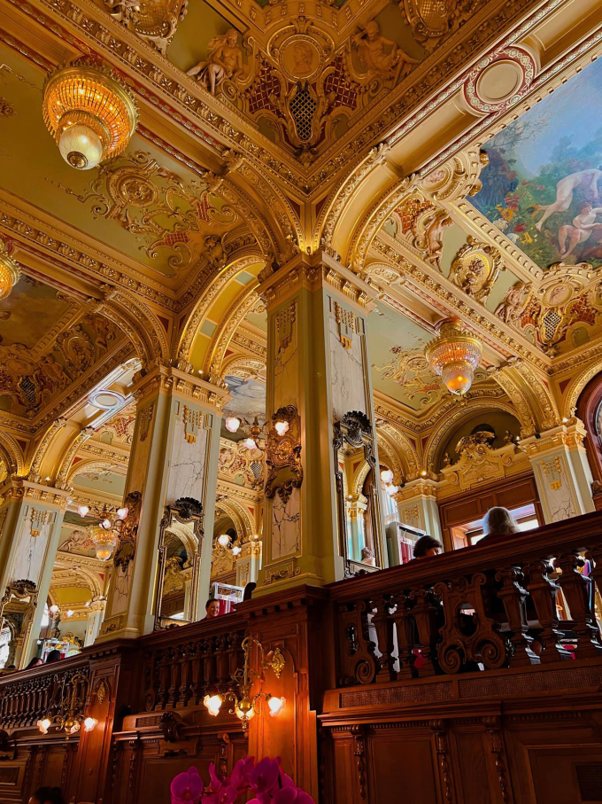 Đồ uống có giá từ 8 euro. Nhóm Quân có ba người, gọi đồ hết gần 40 euro. "So với sự lộng lẫy và sang chảnh của quán, giá đồ ăn thức uống ở đây không quá đắt. Quán có phục vụ thêm cả bữa sáng và tối, nên mọi người cũng có thể ghé thăm vào hai khung giờ này. Ngoài cà phê, đồ ăn, khách còn được nghe các nghệ sĩ chơi đàn piano và các loại nhạc cụ khác, rất thú vị".