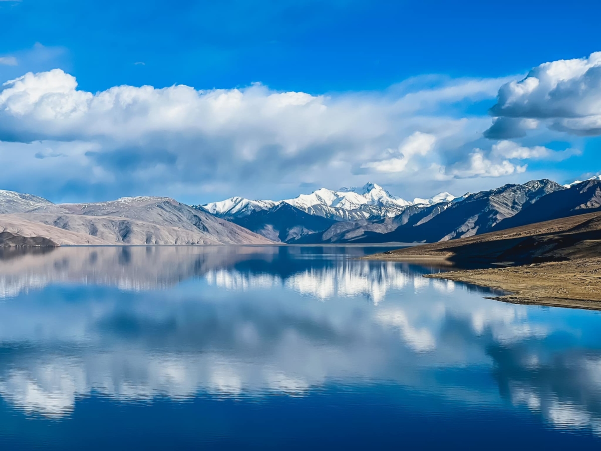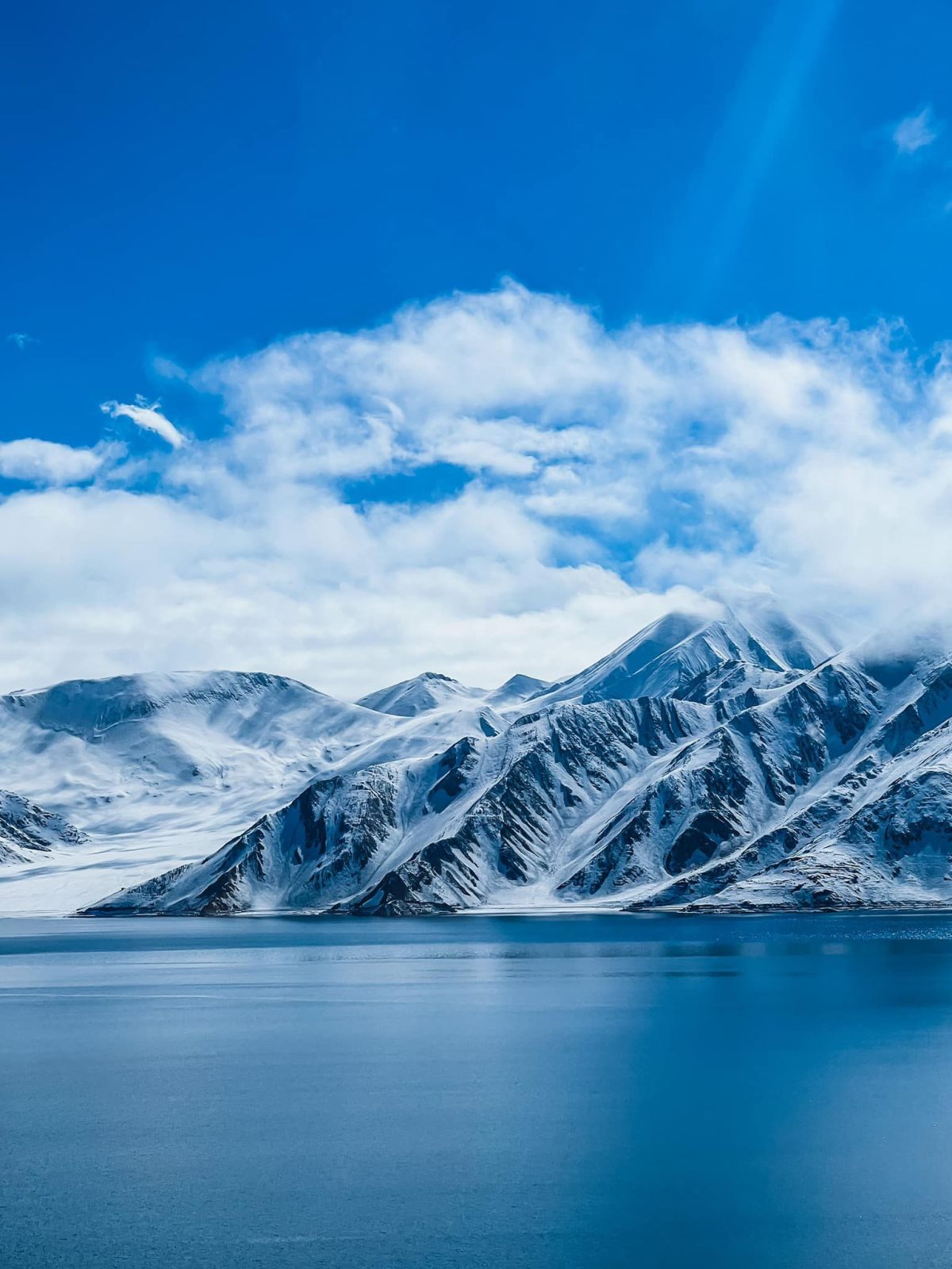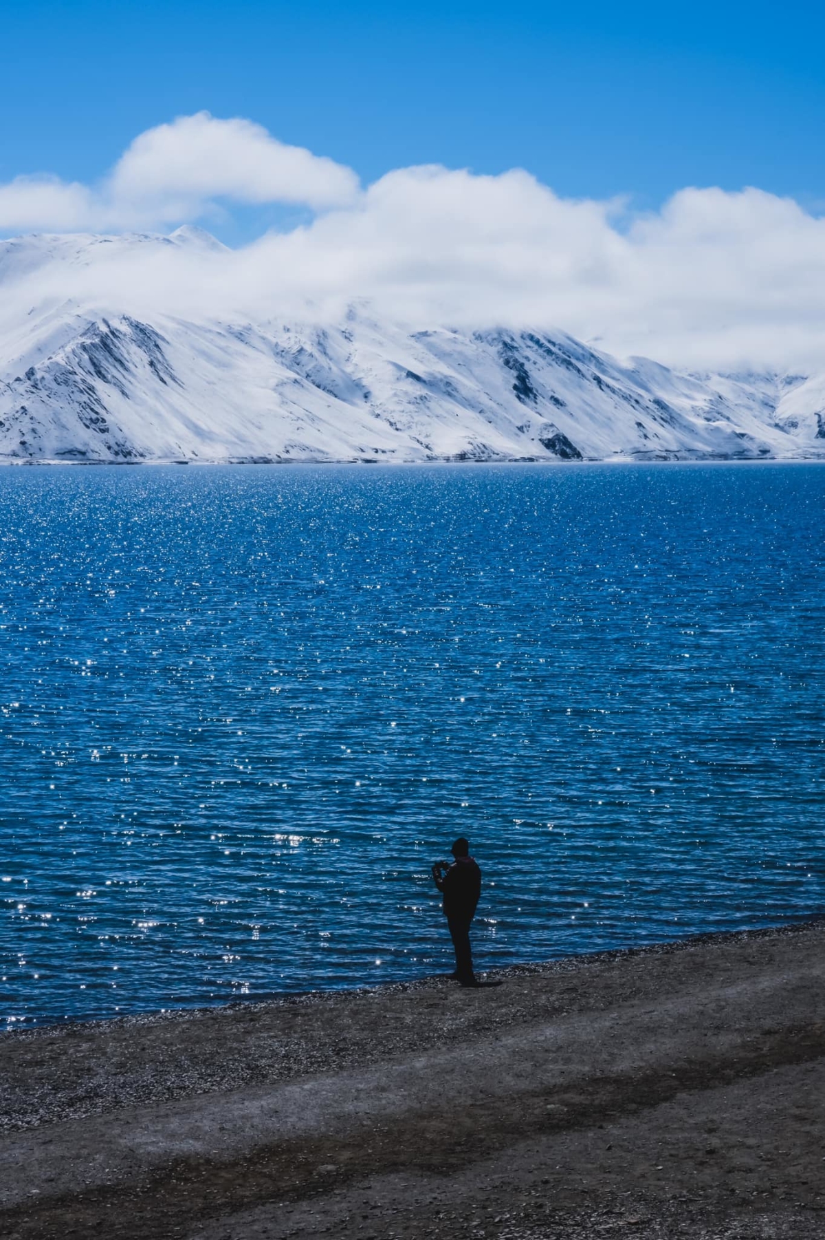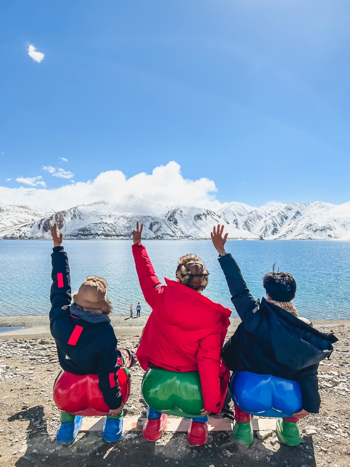 Hồ Pangong Tso nổi tiếng với khả năng đổi màu theo thời tiết, từng thời điểm khác nhau trong ngày. Cả nhóm của anh Chính tới đây khoảng 16h, mê mẩn với vẻ đẹp lóng lánh ánh nắng trên mặt hồ. "Đứng trước Pangong Tso, mình thấy mọi sự mệt mỏi, sốc độ cao, đường xa đều rất xứng đáng. Vì hồ thực tế còn đẹp hơn trong tưởng tượng của mình", anh nói.