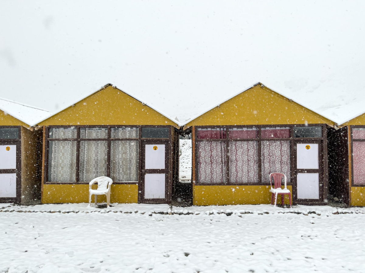 Thời tiết ở đây nắng vào ban ngày, thậm chí nóng do nắng gắt nhưng sáng sớm và chiều tối tới đêm thì lạnh sâu. Chỉ qua một đêm, khu hồ xanh biếc trong ánh nắng hôm trước đã được bao phủ bởi tuyết trắng.