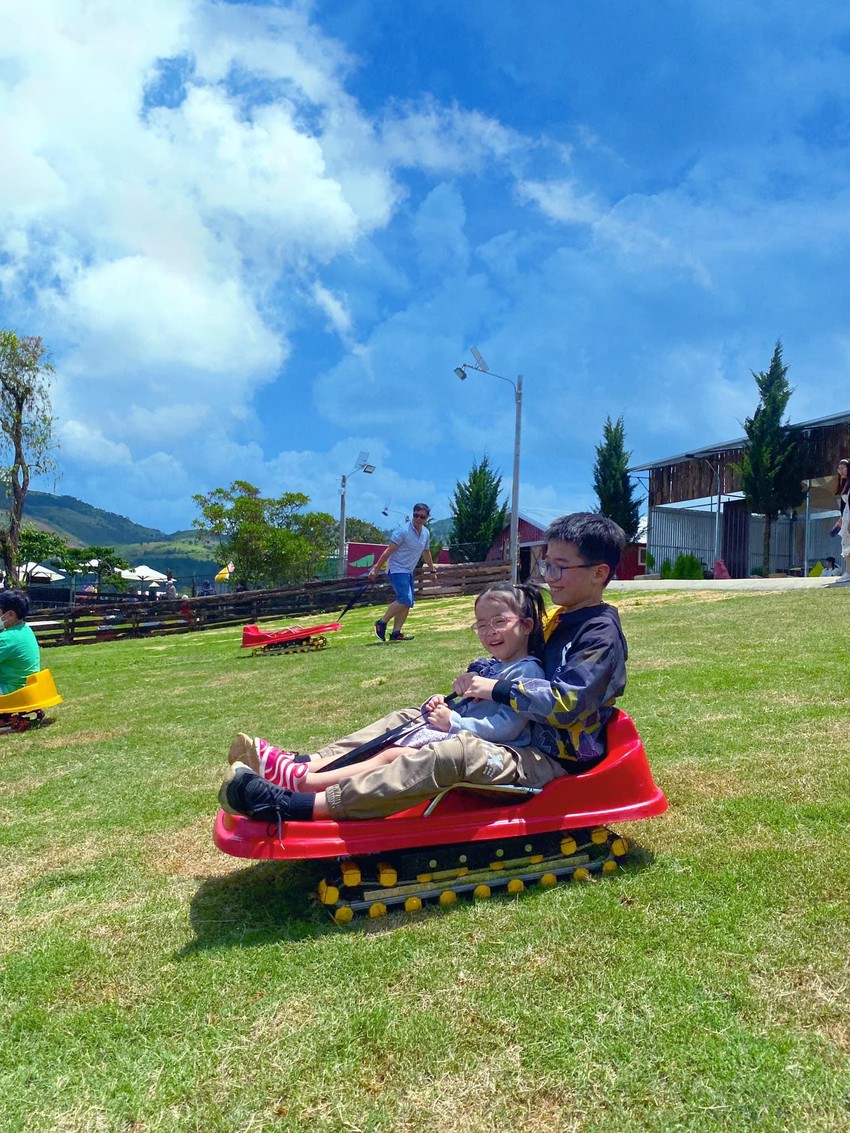 Du khách có đam mê mạo hiểm có thể trượt cỏ. Trò chơi này đã thu hút nhiều du khách không chỉ giới trẻ mà cả trẻ em và người lớn. Bởi vì tốc độ trượt của xe chạy chậm, nên rất an toàn cho mọi du khách khi tham gia trò chơi này.