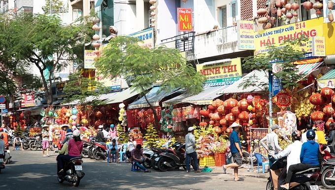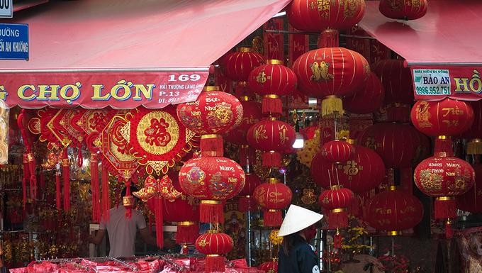 Chỉ còn chưa đầy 2 tuần nữa là năm mới Mậu Tuất đã đến. Các vật phẩm trang trí dịp Tết bắt đầu bày bán rộ tại khu chợ Lớn từ cuối tháng Chạp nhưng mãi đến những ngày cận Tết, không khí tại đây mới sôi động thật sự. Các con đường Hải Thượng Lãn Ông, khu Phùng Hưng, chợ Thiếc khoác lên mình chiếc áo đỏ rực khiến bất kỳ ai đi qua đều muốn ghé lại.