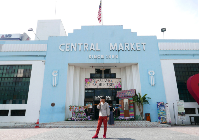 Chợ trung tâm có tuổi đời hơn 130 năm. Xuôi theo dòng sông, chúng tôi rẽ vào Central Market, ngôi chợ cổ kính nổi tiếng nhất ở Kuala Lumpur, hoạt động từ năm 1888. Chợ mở cửa từ 9h sáng đến 18h chiều. Ngược lại với đền Masjid Jamek, chợ này nhìn bên ngoài rất bình thường, kiểu kiến trúc giản dị, chỉ một màu xanh nhạt nhẹ nhàng. Thế nhưng khi bước vào trong, ập vào thị giác của chúng tôi là là vô vàn sắc màu đặc trưng cho nền văn hóa đa rực rỡ chủng tộc của Malaysia. Bên này là dãy hàng Straits Chinese với hàng loạt món lưu niệm đặc sắc của người Hoa, bên kia là những shop Lorong Melayu bán đồ gỗ độc đáo của người Mã. Hấp dẫn nhất và đắt đỏ nhất là những tấm thảm lớn, những chiếc khăn thêu tay và đầm dài dệt từ linen vô cùng tinh xảo trong các shop Lorong India của người Ấn.