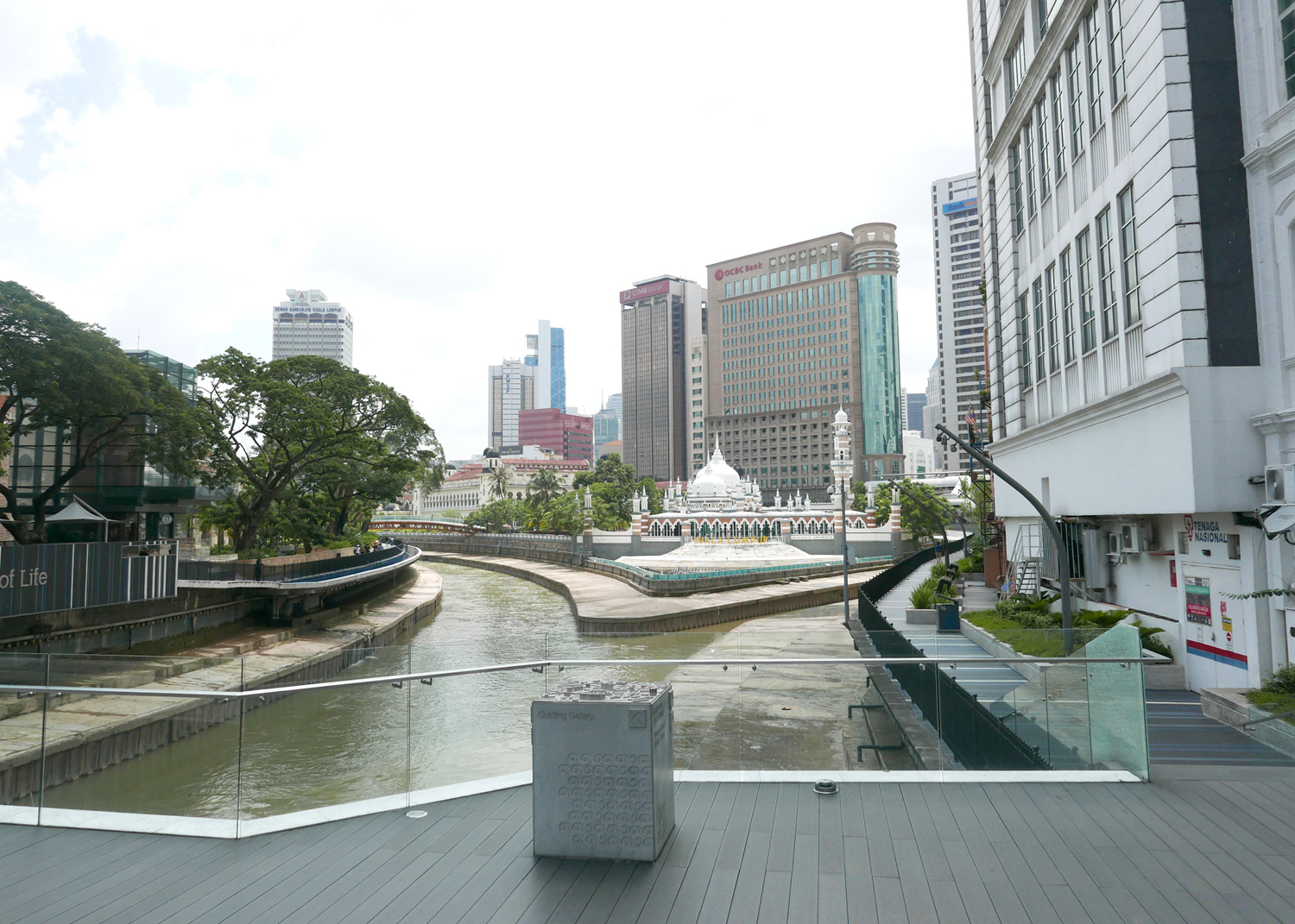 Ra khỏi nhà thờ, chúng tôi dạo bước bên bờ sông Klang, lòng thầm cảm phục trí tuệ của người Mã. Từ một khu vực đầy bùn đất, cỏ dại, hoang vu và lạc hậu, Malaysia đã biến nơi này thành phố đi bộ và điểm check in đẹp nhất thủ đô. Những khoảnh sân lớn lát gỗ kề bên lối đi sạch bóng, được sơn màu trầm theo phong cách Bắc Âu, hàng cây xanh mướt ngả bóng xuống lòng sông, xa xa là các công trình kiến trúc quy mô lớn, làm nền cho những bức ảnh rất có chiều sâu. Chúng tôi bảo nhau, ngồi đây ngắm cả ngày cũng không chán.