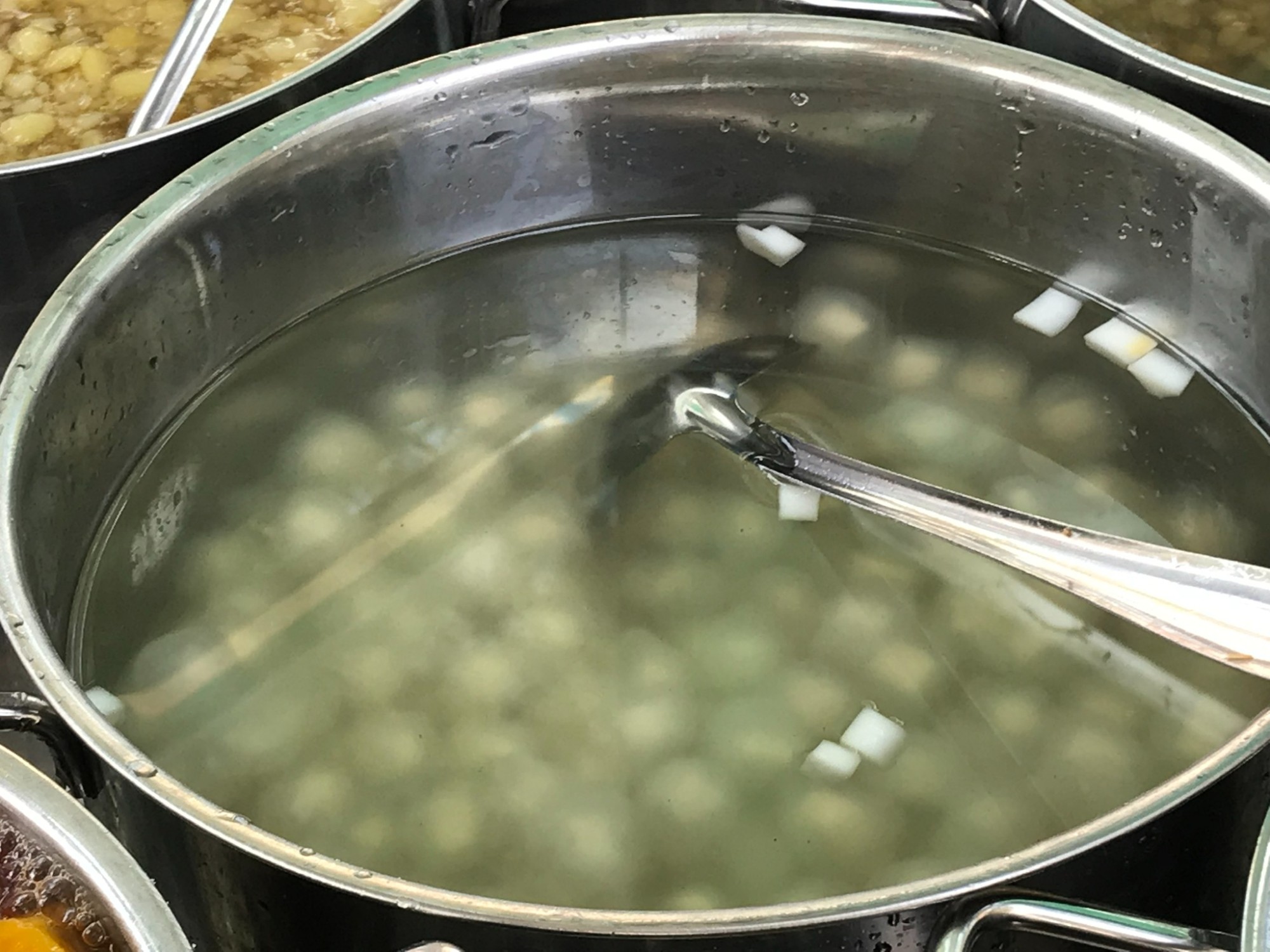 Ngoài món chè bột lọc bọc thịt quay độc đáo, món chè bột lọc bọc dừa của Huế cũng khá cầu kỳ. Dừa được lựa làm nhân phải già vừa tới, không dùng dừa non hay quá già, bột lọc bọc mỏng, khi luộc bảo đảm trong để thấy nhân dừa bên trong... (ảnh: HOÀNG HY)Người Huế xưa nấu một nồi chè để cúng thường chú trọng khâu chọn nguyên liệu. Đậu phải được chọn hạt đều, khô, đường phèn để nước có vị ngọt thanh. Đặc biệt, chè nước thì đậu nở vừa tới, nước trong có thể... soi mặt được.