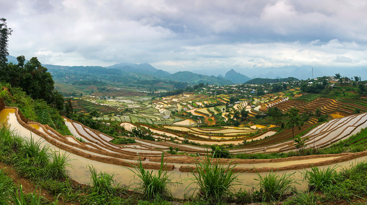 Trước đây người dân chỉ cấy một vụ nhưng nay là hai, với sự đầu tư kênh mương thủy lợi. Họ tháo nước từ trên xe núi vào ngâm đất. Qua những ống nứa, nước tràn xâm xấp mặt ruộng. Ruộng bậc thang phía dưới rộng lớn, càng lên dốc cao thì càng nhỏ lại. Thửa ruộng nào gần đường hoặc đồi dốc, người dân sẽ dùng xe cơ giới hỗ trợ nếu đi lại thuận tiện.