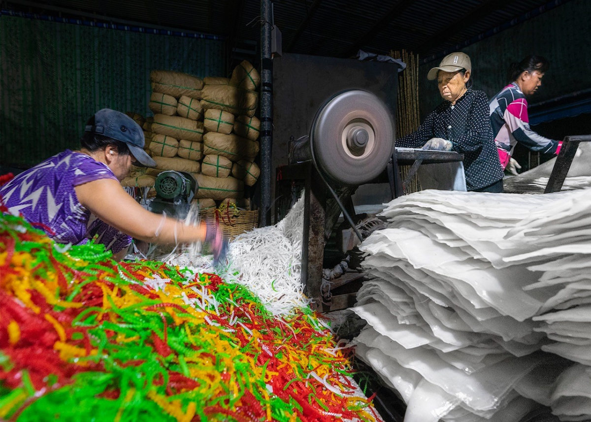 Bột khoai là thành phần không thể thiếu trong các món chè của người Việt. Những sợi bột khoai dai dẻo cùng với hương vị đặc trưng bùi và béo, làm cho chén chè ngon và hấp dẫn hơn. Nhờ nhân công đông, quy trình một đêm sản xuất ra được khoảng 1 -2 tấn bánh bột khoai.