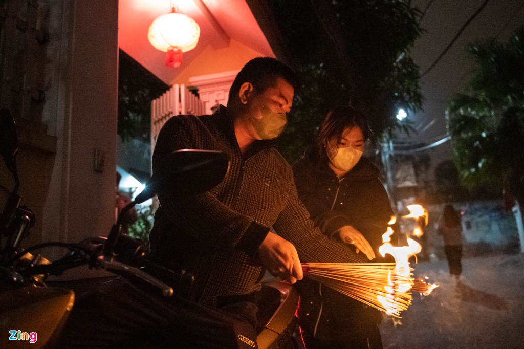 Người dân đều dùng những bó hương to, cố gắng giữ lửa tránh dập tắt trước khi tới nhà.
