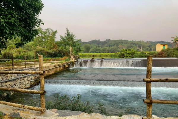 Xung quanh Nặm Thoong là khung cảnh nông thôn miền núi bình yên, bên cạnh là thửa ruộng, xa hơn nữa là những dãy núi trập trùng…
