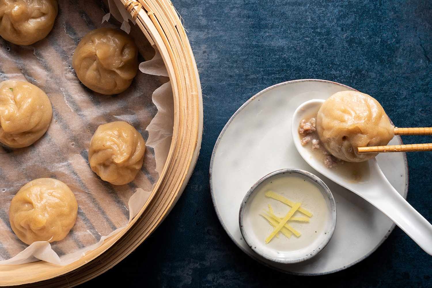Ảnh: The Spruce EatTiểu long bao (xiao long bao) có nghĩa là bánh bao trong cái lồng nhỏ. Khác với các loại bánh bao truyền thống, tiểu long bao có lớp vỏ mỏng gần như trong suốt, đủ dai để giữ trong mình nước súp thịt. Phần nhân truyền thống của món ăn thường được làm từ thịt lợn. Hiện nay, nhiều đầu bếp còn biến tấu với nhân hải sản hoặc rau. Thực khách khi ăn phải nhẹ nhàng gắp miếng bánh vào thìa lớn tránh làm rách lớp vỏ mỏng để nước thịt tràn ra ngoài. Sau đó rưới lên miếng bánh một chút dấm hồng và miếng gừng thái mỏng, rồi từ từ thưởng thức.