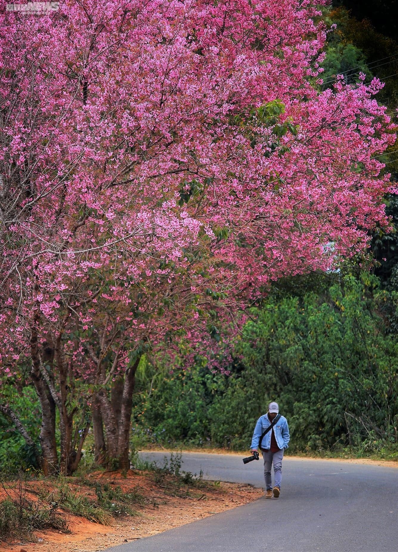 Mai anh đào đang bung nở rực rỡ trên khắp các triền đồi cho đến những cung đường nội ô Đà Lạt khiến du khách thập phương ngất ngây.