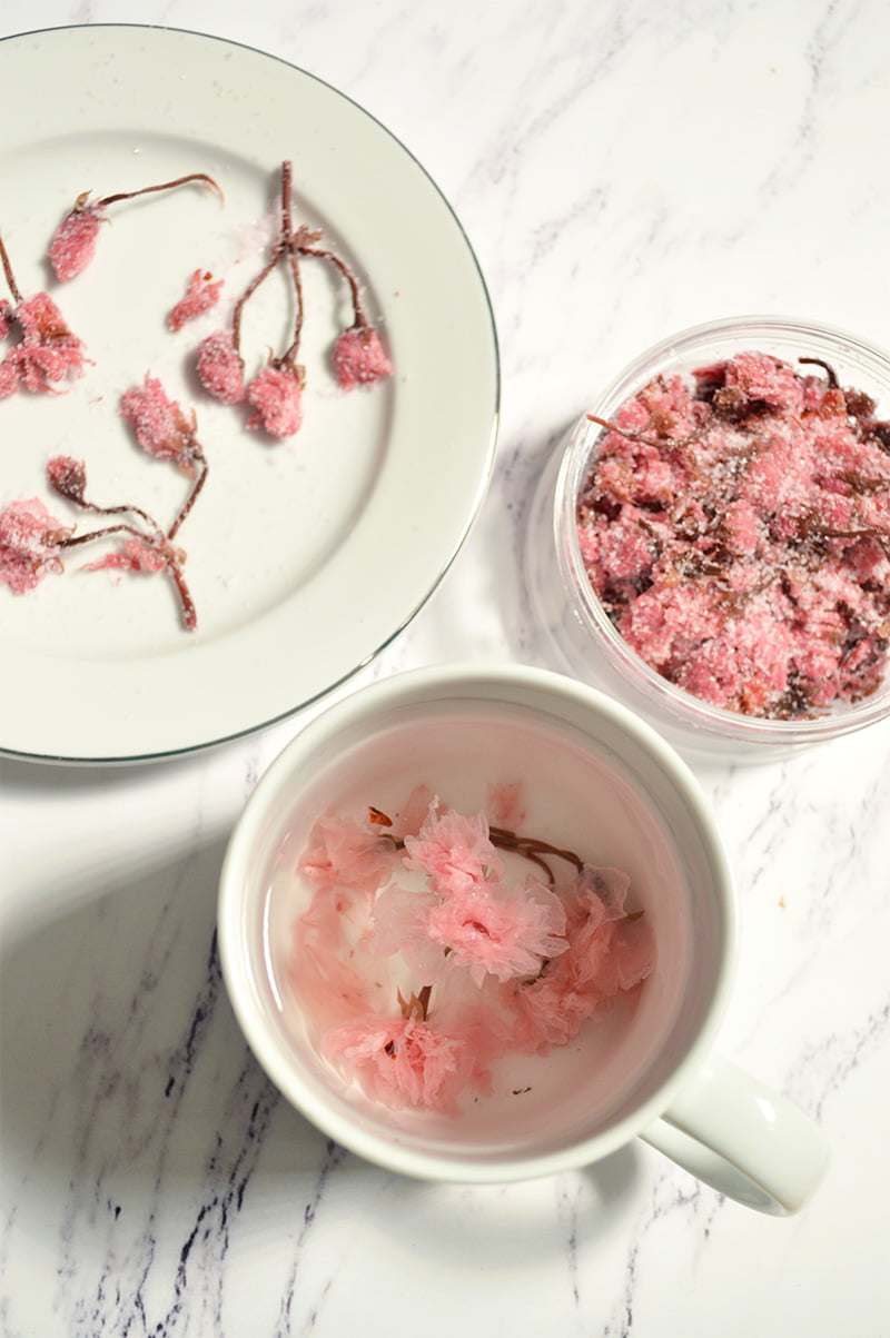 Vào mùa xuân, nhất là trong những buổi hanami, người Nhật có thói quen thưởng thức hai loại trà hoa anh đào là sakura tea và sakura yu. Sakura tea là trà xanh có thêm cánh hoa anh đào khô. Sakura yu đơn giản hơn, là hoa anh đào muối được thả vào nước nóng và thưởng thức như trà. Cả hai đều là món uống thích hợp đi kèm đồ ngọt và một số món ăn nổi tiếng của Nhật Bản. Một số nơi khác dùng thêm mật ong và chanh, pha bằng cách đun sôi nước và đặt cánh hoa vào khi nước sôi, tắt lửa, khuấy cánh hoa.