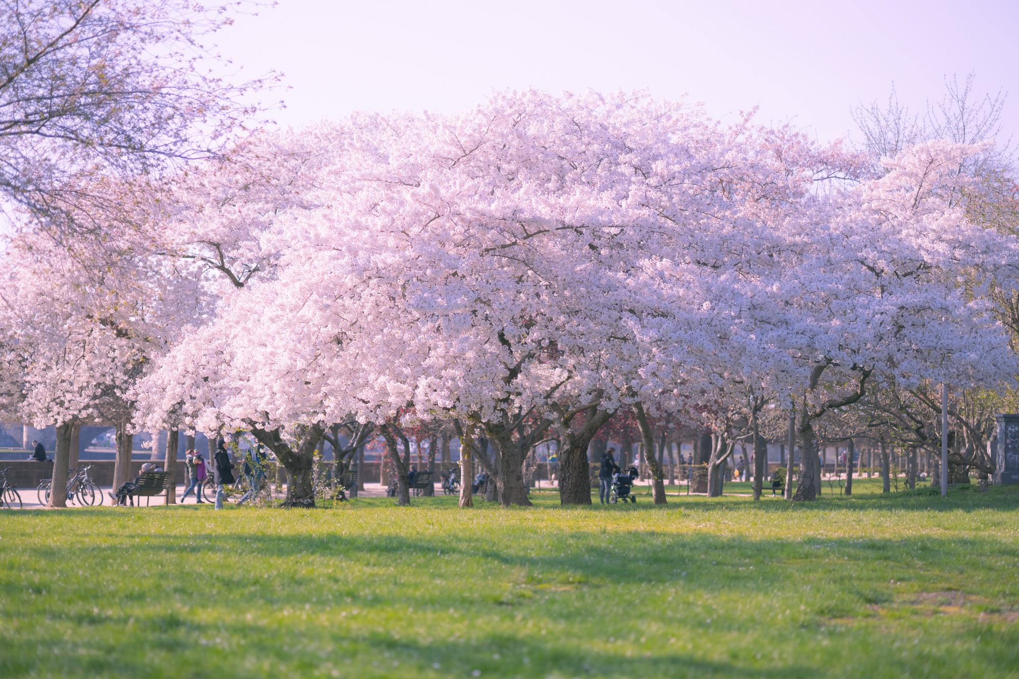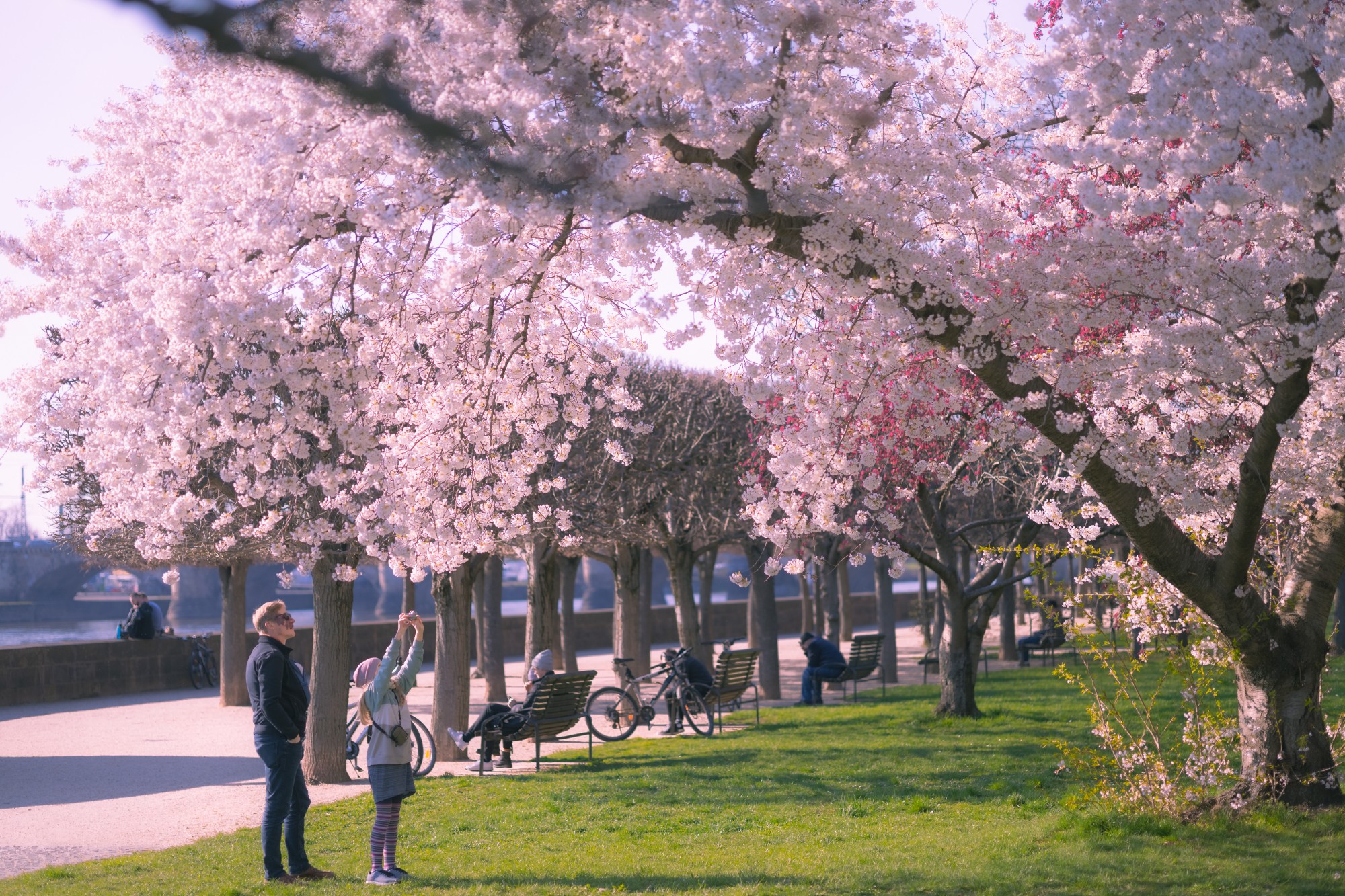 Hoa anh đào nở rộ, tô điểm thêm vẻ đẹp cho khung cảnh thành phố, cùng nếp sinh hoạt của người dân