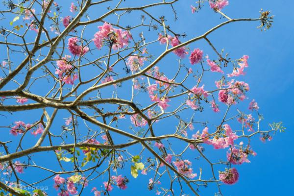 Cây kèn hồng có nguồn gốc từ châu Mỹ, phù hợp với thổ nhưỡng Nam Bộ. Đường kính thân cây trung bình khoảng 50 cm và có thể lớn hơn, tán hình dù. Hoa màu hồng nhạt giống hình chiếc kèn, mọc thành chùm. Ảnh: Trần Trung Nhân